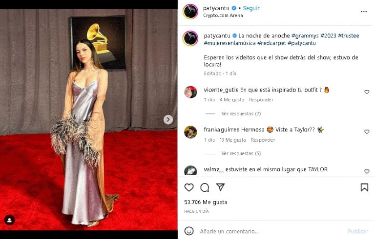 La querida estrella de pop se hizo presente en Instagram y esta vez para mostrar el gran look que utilizó en los Premios Grammy 2023Ciudad de México.- Paty Cantú es una de las representantes del pop en español que más años lleva en la industria musical innovando con sus temas de amor y desamor, los cuales no solo se adaptan a las nuevas tendencias, sino que terminan por imponer trends en redes sociales. Sin embargo, otra de las cualidades de la artista es su gran estilo, mismo que demuestra en cada una de sus publicaciones en Internet.