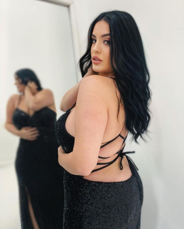 Es bien sabido que la modelo plus size es una fashionista y sabe cómo sacar provecho de sus curvas con todo tipo de prendas, esta vez lo hizo con un sofisticado look, ideal para un evento de gala, pues se trata de un vestido negro lleno de lentejuelas con escote en la espalda y una abertura en la pierna.