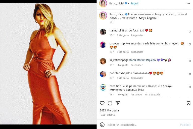 Itatí Cantoral se enfunda en distinguido vestido naranja y le llueven halagos