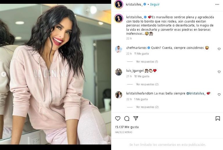 En la imagen aparece con un conjunto rosa que resaltó su envidiable cuerpo; na combinación que enalteció su gran belleza mientras posa lejos de los estudios de 'Venga la Alegría', donde demostró su destacada belleza frente. Incluso acompañó su foto con el siguiente mensaje: "s maravilloso sentirse plena y agradecida con todo lo bonito que nos rodea, aún cuando existan personas intentando lastimarte o desenfocarte, la magia de la vida es desecharlo y convertir esas piedras en boronas inofensivas".