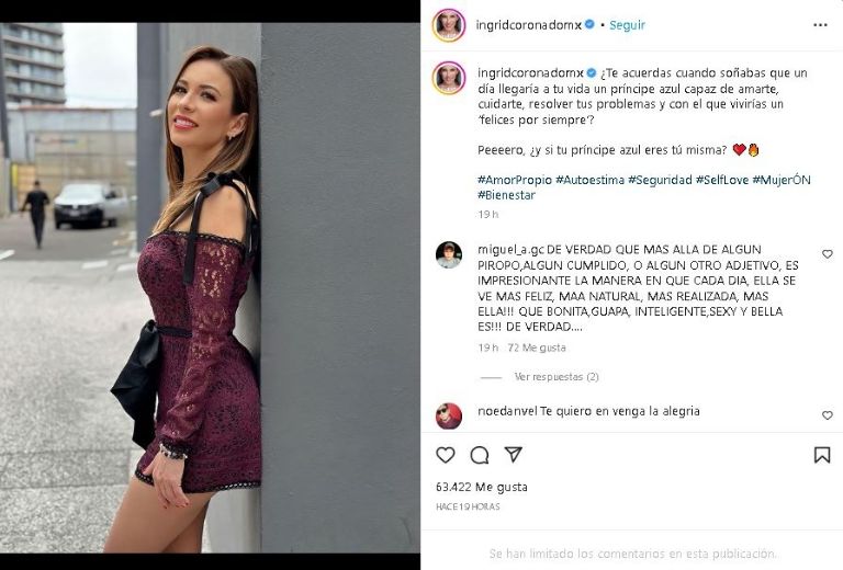 Ingrid Coronado posa con encantador vestido morado y le llueven halagos