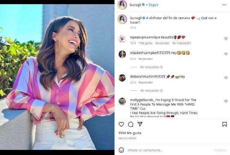 A través de una instantánea desde sus redes sociales, la estrella de la pantalla chica y aclamada exestrella de Televisa posó con un coqueto pantalón blanco y blusas de rayas rosas con blanco que, en gran medida, enalteció su belleza natural frente a los reflectores mexicanos, por lo que sus fans no han dejado de elogiarla y escribirle mensajes de cariño por su gran sentido de la moda, entre ellos destacan: "Guapa", "Hermosa", "Linda", Qué preciosa", entre otros.
