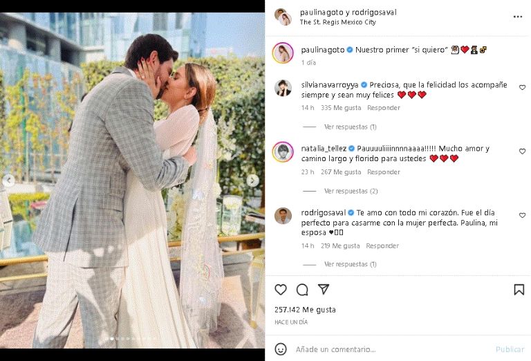 Resulta que a estrella mexicana celebró su unión nupcial con Rodrigo Saval Pasquel el pasado 28 de febrero, y aunque en ese momento no reveló la fecha del enlace, fue hasta este momento que compartieron su felicidad.Resulta Resulta que la pareja unió sus tuvo como escenario de la ceremonia y la recepción de la boda el jardín BLOOM del Hotel St. Regis, uno de los edificios más emblemáticos de la avenida Paseo de la Reforma, en la capital del país.