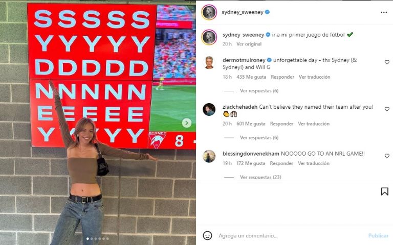 Sydney Sweeney fue a su primer partido de fútbol y publicó los aspectos más destacados en su página de InstagramEstados Unidos.- Sydney Sweeney estaba apoyando al equipo local durante el fin de semana cuando asistió a un partido de fútbol (o fútbol) para animar al equipo de la AFL New South Wales, The Sydney Swans. Si bien estamos seguros de que estaba a bordo por una multitud de razones, la actriz de Euphoria sin duda estaba muy mareada por el enfrentamiento del día del juego sabiendo que compartía un nombre con el equipo de fútbol. En una lista de imágenes de Instagram que puedes ver a continuación, la actriz, que una vez interpretó a Amber Heard en la pantalla grande, se pone algo de merchandising del equipo, así como un crop top y jeans y comparte su gran día.