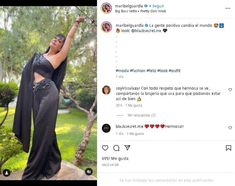 La destacada actriz regresó a las redes sociales y esta vez con un encantador look negro desde su cuenta oficial de InstagramCiudad de México.- Maribel Guardia volvió a mostrar su buen sentido de la moda frente a las cámaras del espectáculo, pues mostró su gran don para las prendas al posar con un distinguido outfit de día desde la comodidad de su hogar. Una publicación que dejó en shock a sus fieles seguidores de Televisa