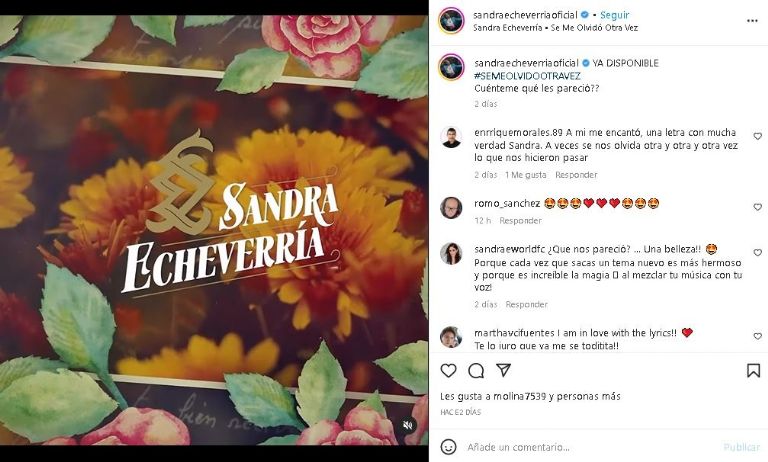Por el momento, Sandra Echeverría disfruta de una exitosa carrera como solista dentro de la industria musical, pues se sigue posicionando como una de las compositoras femeninas más aclamadas del país, gracias a su talento que sigue presumiendo día con día desde sus perfiles de Internet.
