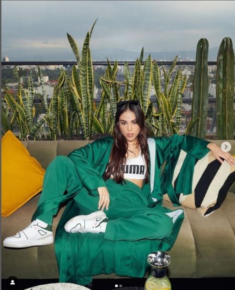 Resulta que la estrella de temas como 'Mala Fama', 'Oye Pablo' y 'Sodio' impresionó a sus 34 millones de seguidores, luego de posar con un destacado cnjunto verde deportivo que resaltó su envidiable figura de infarto, mismo que es envidiado en el medio artístico y que por supuesto, presume cuantas veces aparece arriba de la tarima, la cual demostró su gran sentido de la moda frente a los reflectores del espectáculo.