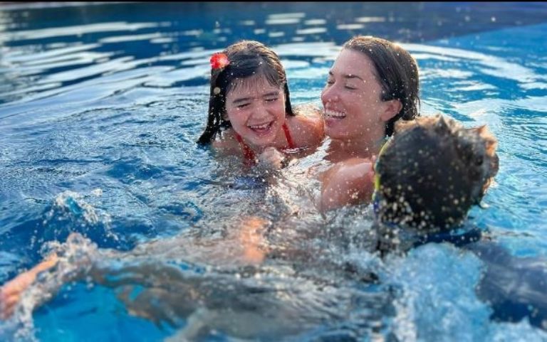 En la imagen también se puede ver la gran amiga de kristal Silva y Cynthia Rodríguez en una destacada vista al un parque acuático de Nickelodeon , donde aparecen ella y sus pequeños disfrutando de una cálida tarde de primavera en una alberca y que, si bien, logró causar toda una sensación en las redes: "Felicidad total".