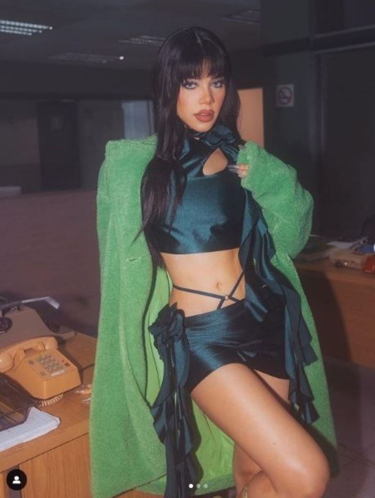 Y esta vez la también creadora de contenido demostró que no solo tiene talento y carisma para cantar, pues posee un excelente gusto por las prendas y cómo combinarlas. Una gran apariencia que mostró al compartir un fotografía de su destacada apariencia, donde posó con un destacado conjunto color verde que, en gran medida, enalteció su belleza natural frente a las cámaras.
