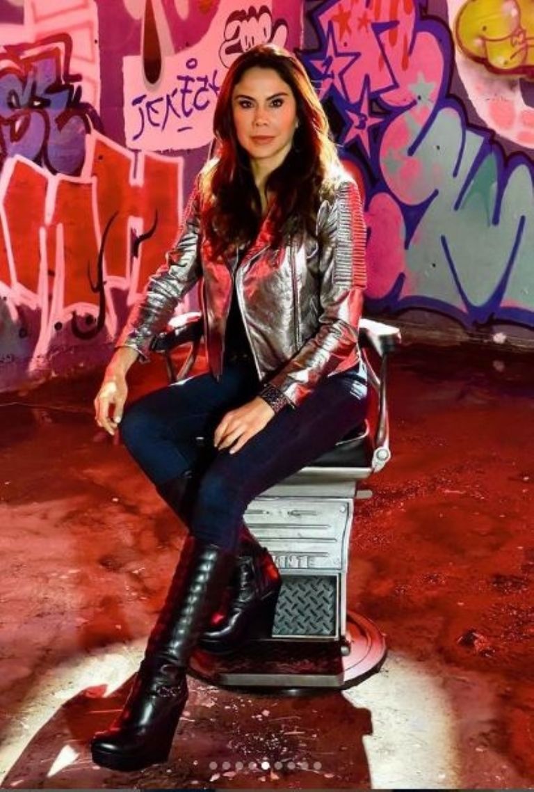 Esta combinación se trató de un distinguido pantalón de negro y una chamarra plateada que combinó con accesorios plateados, un peinado liso y un maquillaje en tonalidades café que, si bien, la hicieron resaltar en las redes sociales, mismo que utilizó como parte de su nueva etapa tras dejar cámaras de Televisa, luego de dejar su programa Al aire con Paola Rojas.Una prenda que combinó con un peinado recogido en ondas y un maquillaje en tonalidades café y que utilizó en este mes de abril.