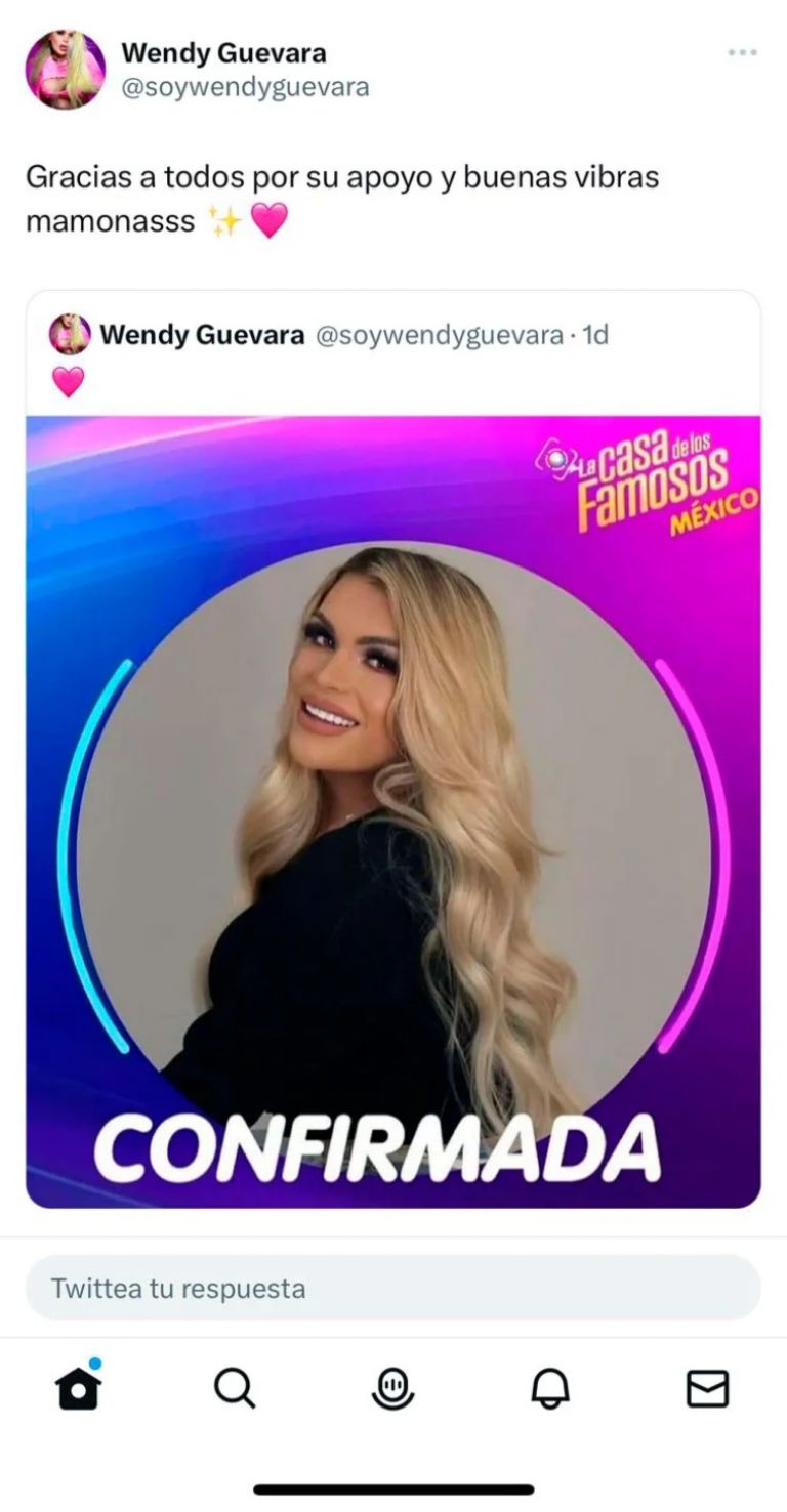 La que sorprendió fue Wendy Guevara del grupo de Las Perdidas, pues ante la lentitud de la televisora ella misma decidió confirmarse para pedir el apoyo de sus fans en este nuevo proyecto, pues será su debut en los reality show ya que únicamente se había dedicado a las redes sociales.