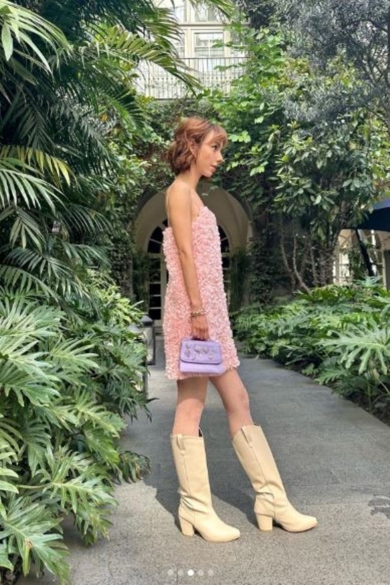 Es por ello que la artista utilizó su cuenta de redes sociales para presumir su destacado 'outfit'. En dicha publicación aparece con un encantador vestido rosa claro, el cual combinó con distinguidos accesorios plateado, mismos que presumió desde los foros de Unciable.