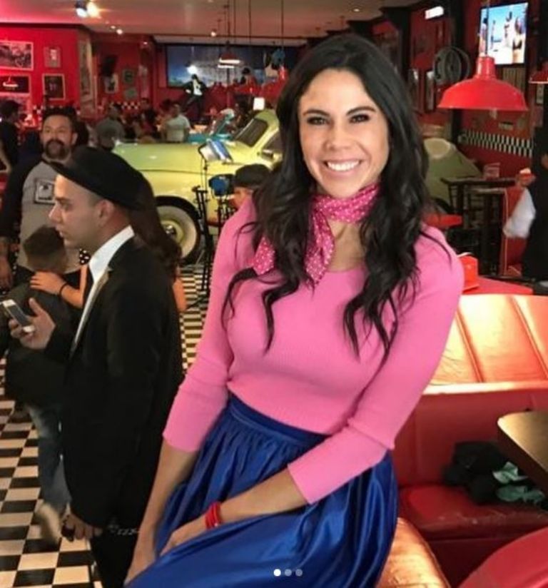Esta combinación se trató de una blusa rosa y una falda azul al estilo de los cincuenta que, si bien, la hicieron resaltar en las redes sociales, mismo que utilizó como parte de su nueva etapa tras dejar cámaras de Televisa, luego de dejar su programa Al aire con Paola Rojas.Una prenda que combinó con un peinado recogido en ondas y un maquillaje en tonalidades café y que utilizó en este mes de abril.
